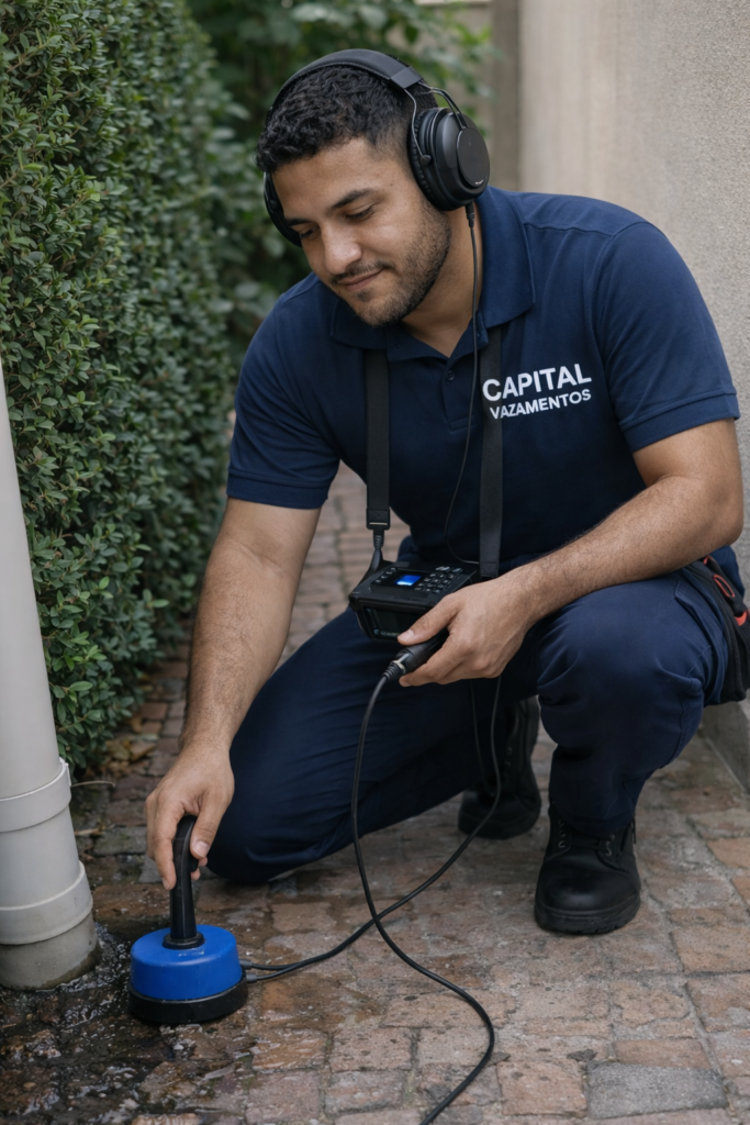 É um serviço especializado para localizar vazamentos ocultos em piscinas, tubulações, caixas d’água e redes hidráulicas, sem quebrar paredes ou pisos desnecessariamente.